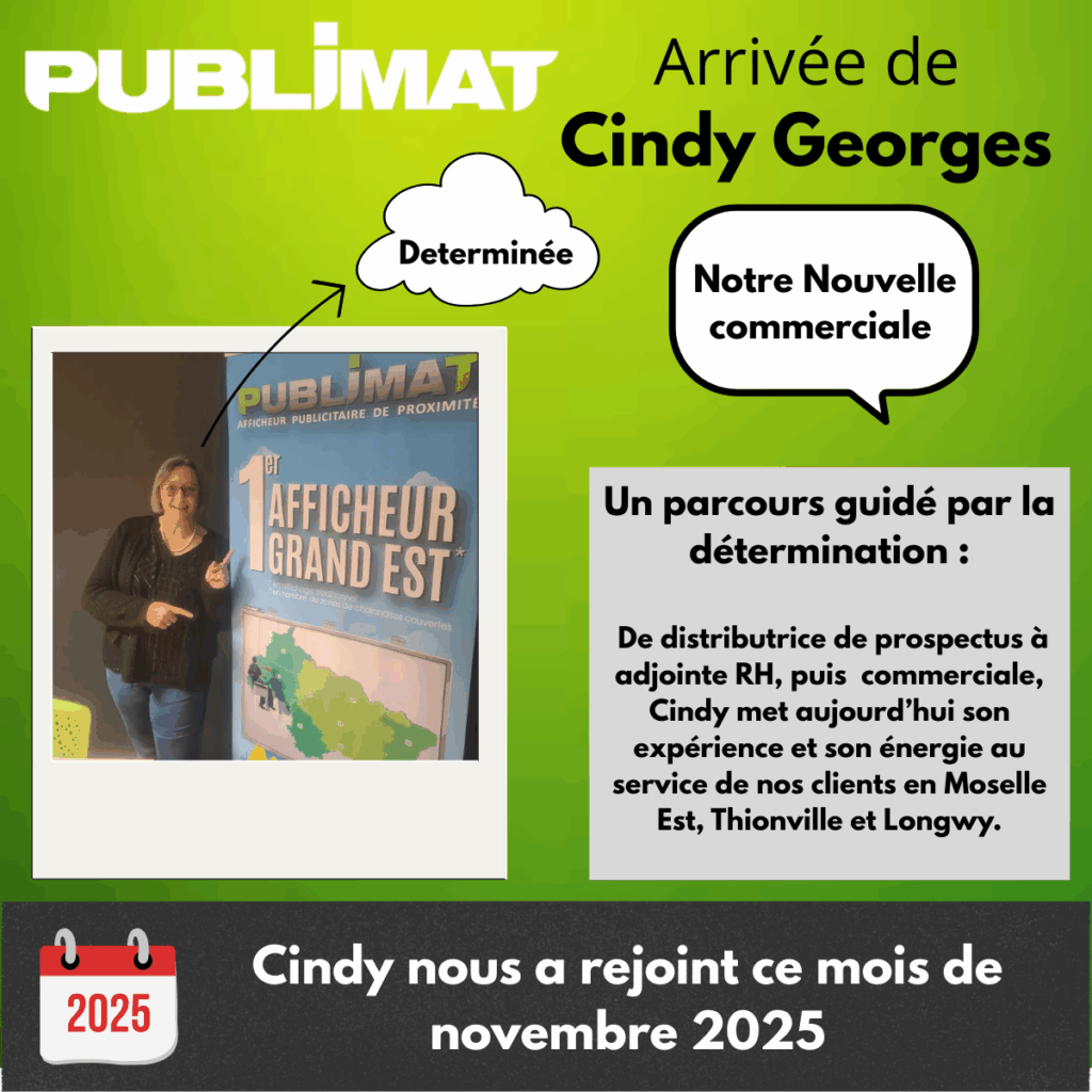Bienvenue à Cindy Georges chez Publimat ! 🎉
